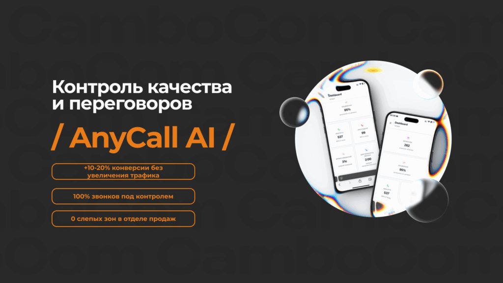 AnyCall AI — полностью анализирует звонки: ошибки, упущенные заявки, слабые места отдела продаж, эффективность сотрудников.